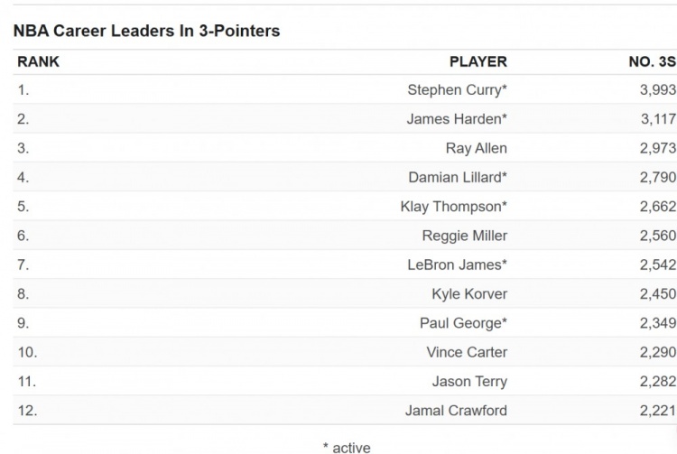 在斯蒂芬-库里横空出世之前,职业生涯投进3000记三分球似乎是一个遥不可及的目标。