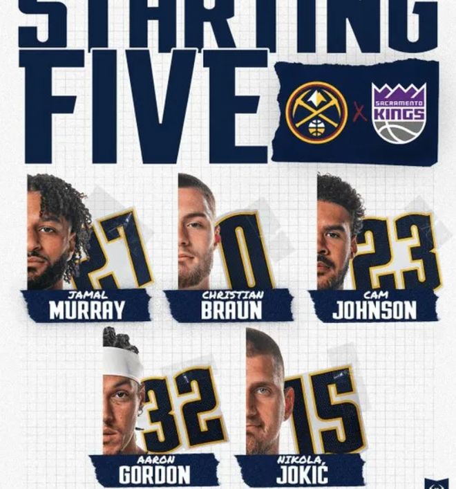 本场比赛,首发阵容方面,国王队这边,主帅排出的最新首发五人组为:丹尼斯-施罗德、扎克-拉文、德玛尔-德罗赞、阿丘瓦、多曼塔斯-萨博尼斯;掘金队这边,首发阵容则为:贾马尔-默里、克里斯蒂安-布劳恩、卡梅伦-约翰逊、阿龙-戈登、尼古拉-约基奇。