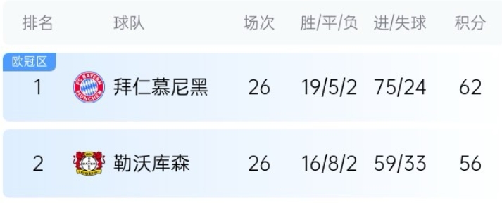 进球网还分析道:德甲仅剩8轮的情况下,拜仁仍手握主动权,勒沃库森想要后来居上,必须指望拜仁出现重大失误。国际比赛日后,拜仁将迎战圣保利,而勒沃库森将与波鸿展开较量。