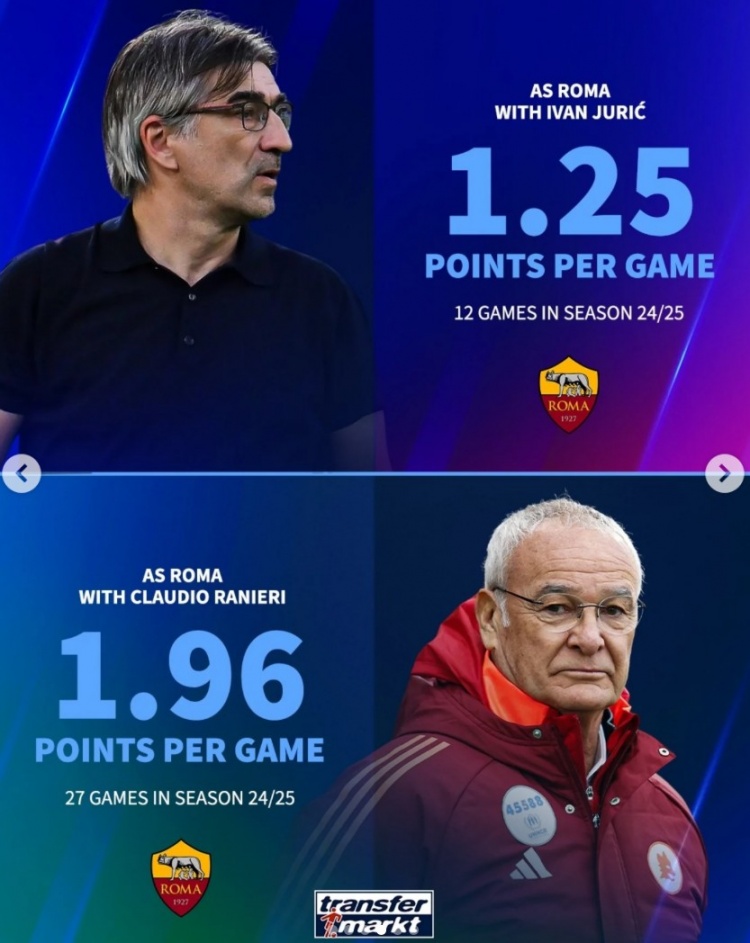 3月19日讯 德转盘点了在本赛季中期更换主帅的6支球队场均积分变化情况,其中曼联、罗马、里昂有所提升,而AC米兰、多特、西汉姆则有所下降。以下为本赛季场均积分具体情况: