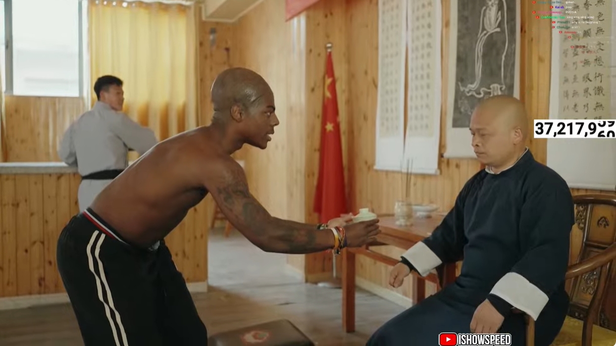 Speed继续中国行之旅,今日最新直播显示,Speed来到河南郑州嵩山少林寺,感受佛教传统文化。