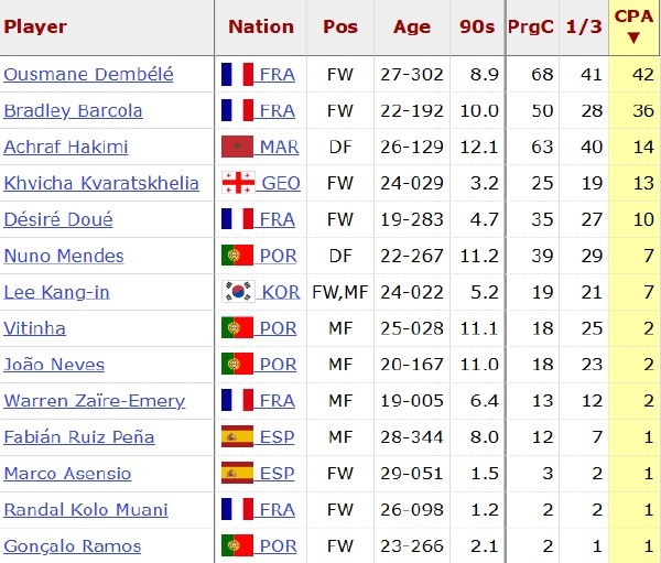 从统计数据可以看到,在欧冠赛场,登贝莱是队内带球推进进入点球区、进攻三区和发起进攻次数最多的巴黎球员。