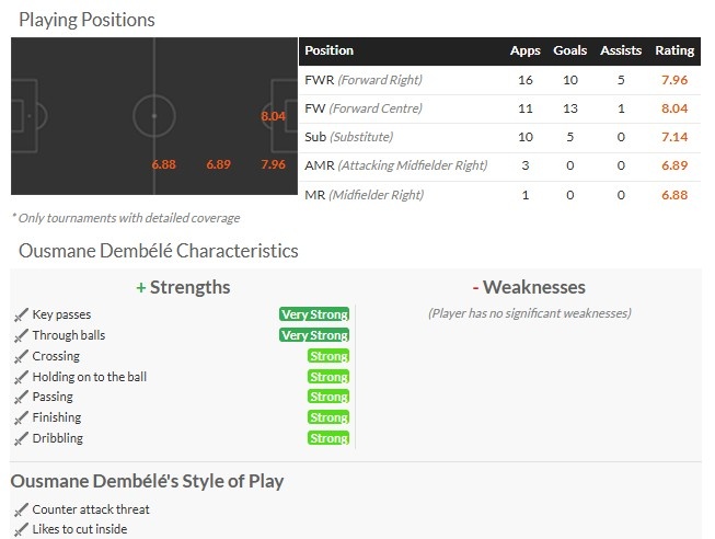 要知道这还是登贝莱因为红牌、发烧和恩里克给他队内纪律处罚(对战阿森纳),导致他错过了3场多的比赛时间。